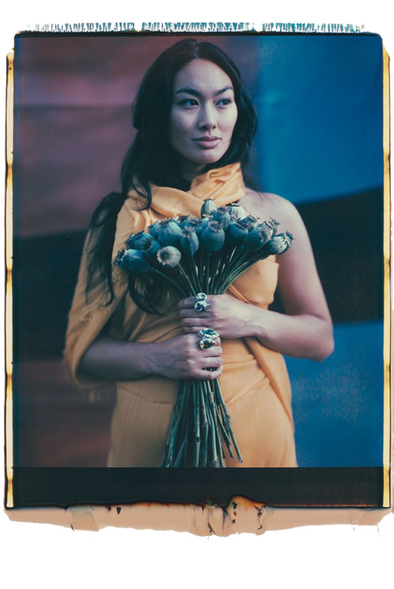 bedeuten und mir große Freude bereiten. Eine meiner Lieblingsblumen beispielsweise ist die Akelei, so habe ich versucht, sie in Schmuck umzusetzen. So natürlich wie möglich. Also habe ich Abdrücke von einer Blume genommen und diese in Einzelteilen zusammengesetzt. Der Anhänger selbst wurde in Silber gearbeitet und mit einem Goldrahmen versehen. So konnte ich ein Stück Natur konservieren