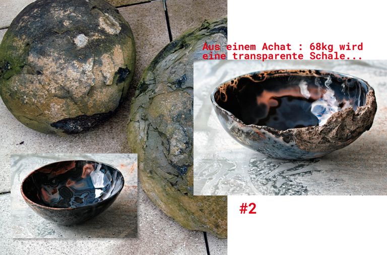 Idar-Oberstein. Aus Rohsteindrusen suchen wir in der Werkstatt die schönsten Achate aus: Aus den rostigen Blechtonnen entstiegen, dürfen die Steine zu unseren