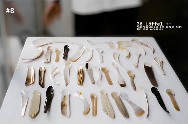 Der Stahl der Klingen selbst ist so gearbeitet, dass er wellenförmig das Schiff trägt, dem Fisch seine gemusterte Haut verleiht oder aber der Maserung von Fleisch gleicht. Die Materialien der Griffe entstammen passend zu den Werkzeugen auch dem Wasser oder dem Land. Auch diese Stücke sind aus der Zusammenarbeit mit R.E Waydelich entstanden.