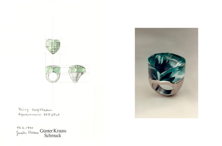 Krauss gewann damals schon seinen ersten von mittlerweile drei Diamond International Awards und zwei Mal in Folge den Preis der Stadt Genf, Auszeichnungen, zu denen mittlerweile die Benvenuto Cellini-Medaille in Gold, die Goldene Muschel für das Juwel des Jahres, drei Mal die Goldene Lupe, ein erster Preis für Platin als Schmuckmetall, drei Preise für die Gestaltung von Diamanten Heute und die Aufnahme in die Diamonds International Academy dazu gekommen sind. Krauss arbeitete in der Gruppe „Art Design“ frei für Juweliere in Paris und New York, erwarb sich einen internationalen Ruf und zählte das holländische Königshaus zu seiner Klientel. Es kann durchaus vorkommen, dass man einem Schmuckstück von Günter Krauss an einer Dame in Rom, Paris oder New York begegnet. Und man wird es sofort erkennen.