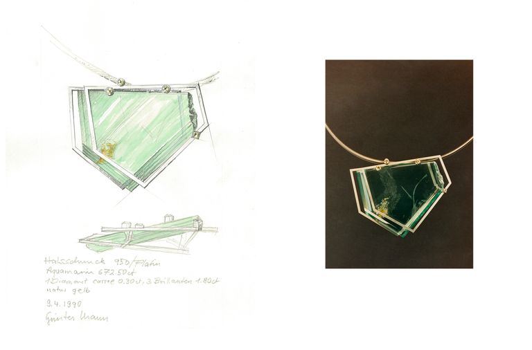 diesen Zeichnungen Schmuckstücke geschaffen, die in Farbe und Form ewig Bestand haben. Natürlich sind auch diese Stücke Unikate.